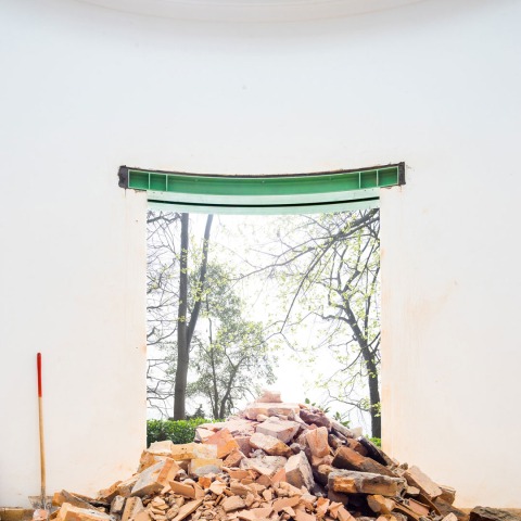 The architecture studio Something Fantastic is responsible for the design concept of the German Pavilion. For them the opening of the pavilion is not only a political, urban and architectural statement, but also a welcoming gesture to the visitors of the exhibition. They have provided indoor and outdoor seating, free WLAN, power stations, white plastic chairs, and an ayran fountain that will be running during the opening days of the Biennale, operated by a Lebanese caterer from Mestre, the Arrival City in Venice.