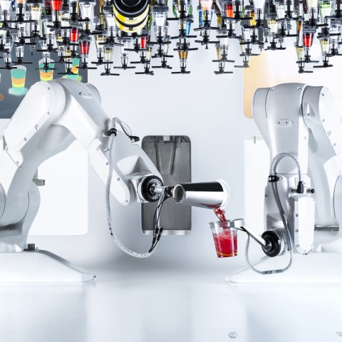 The robotic bar by Makr Shakr, was modelled on the gestures of Italian dancer and choreographer Marco Pelle from the New York Theatre Ballet.
