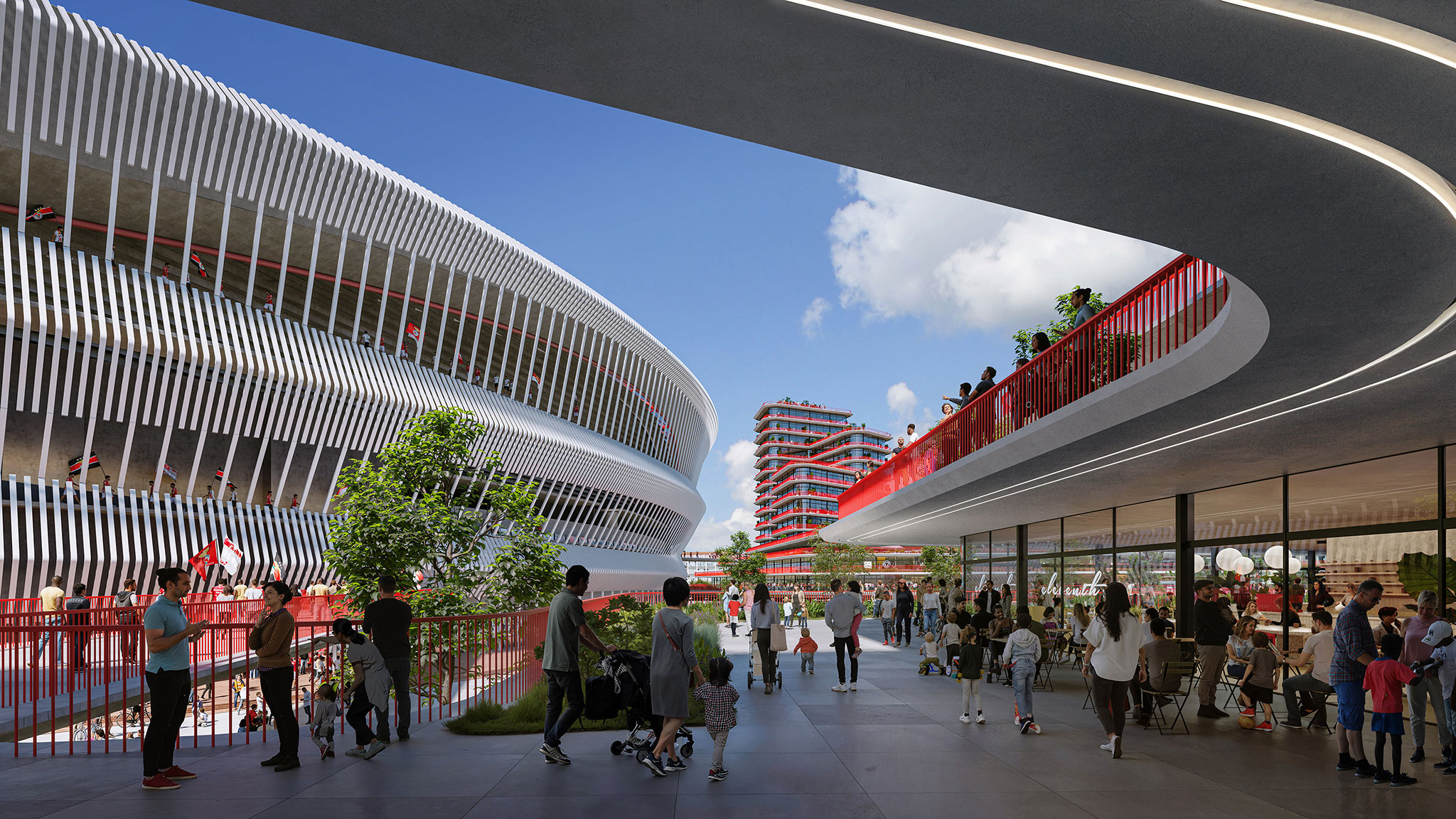 From a contemporary perspective, the project will revitalize the façade of the stadium itself. Through fluid and dynamic architecture, the intervention redefines the stadium's form and attenuates light and heat, improving fan comfort while preserving the iconic curved roof trusses.