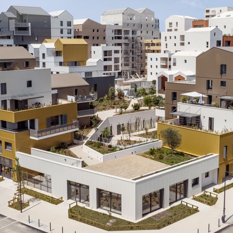 The diversity of the types of inhabited roofs (terrace roofs, sloped roofs, etc.) and housing – collective, intermediate, or individual – creates atypical apartments, giving their inhabitants a sense of individualization conducive to personal appropriation. Many of these units are cross-ventilated, and all have large private outdoor spaces. Thus, new ways of living are born.