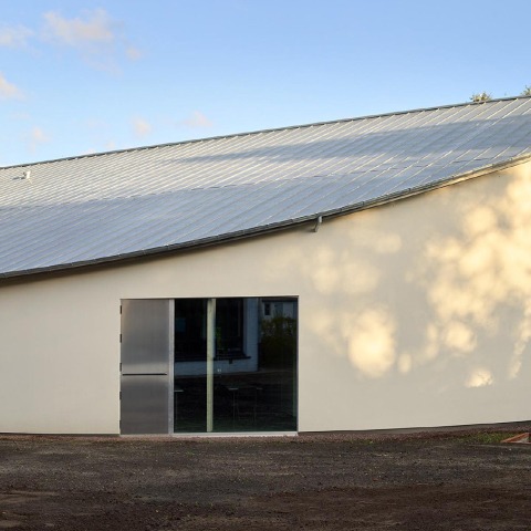 The new library for the municipality of Sint-Martens-Latem is first of all a central gathering point. In the tradition of the cultural center, the library is set up as a large living space, shared by the residents of the municipality. A saddle-shaped roof is delimited by a circular perimeter. The perimeter cuts the roof shape into a distinctive figure in the center of the municipality, as an anchor point, as the first element of a cluster of public buildings – buildings in the village center, along the road, and along the new municipal settlement. The rounded red brick perimeter makes the main space of the library building. The library cabinets inside are built alongside and also carry the roof. The steel cabinet wall defines the separation line between library spaces and the municipality. In the round perimeter, a square figure makes both the reading garden and the polyvalent hall. The reading room is a reading room in direct relation to its garden. The reading garden is the center of the library, is the ‘largest room in the largest house’ of the municipality.