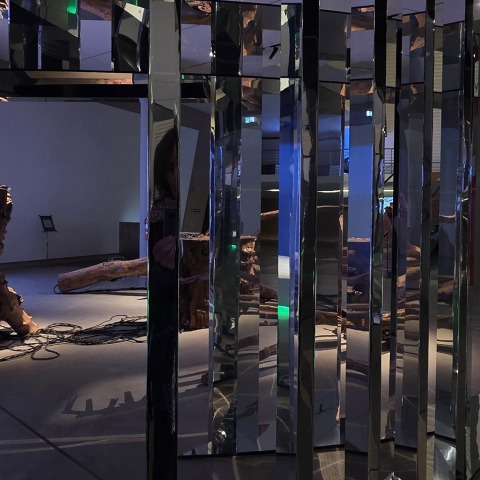 The exhibition aims to question the traditional separation between nature and technology, proposing an immersive experience where both dimensions merge. Through reflection, repetition, and formal continuity, the installation constructs a shifting perceptual field that invites the visitor to become an active participant in this constructed ecology, redefining their role within the exhibition space.