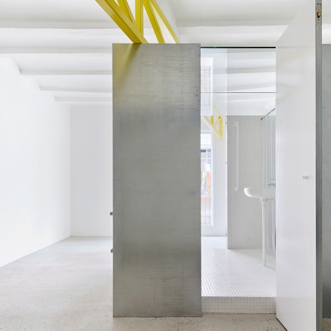 P-M-M-A took advantage of the commission to reform this flat in the Raval of Barcelona, to propose a contemporary reading, around a structural element that ends up becoming the protagonist of the project, a yellow painted truss.