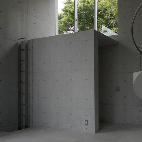 The curved surface of this concrete spiral staircase gives softness to rigid space. This sculptural geometric form goes beyond the function and becomes the Yorishiro (object in which a spirit draw), which symbolizes the unity of the family in this house.
