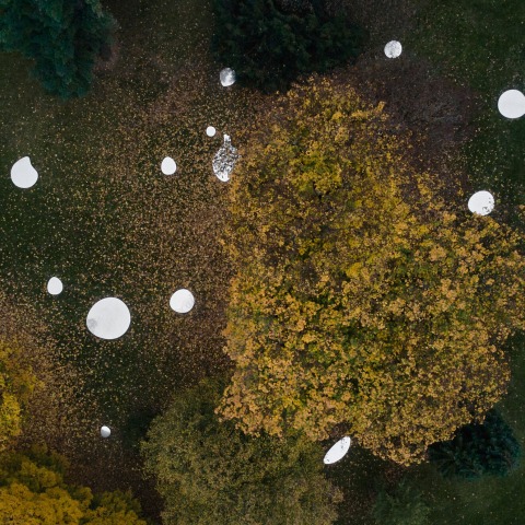 The last permanent installation is the mirrors of Zlín – a lyrical constellation of fluid shapes, poetically placed among the most beautiful trees of Zlín‘s park, whose treetops, flowing sky, and curious passing visitors they reflect. The soul of this part of the installation is a sound composition that is a celebration of the cycle of time, the turning of the seasons, the lengthening and shortening of the days, the moments of equinox and solstice, which functions as an unpredictable, surprising solar calendar or astrological clock. The basis for the music composition that sounds through the park in various phases of the year was a careful mapping and study of the sounds of bells in the belfries of the Zlín Region. Thus the park rings with the vibrations of bell bronze, which creates a scaled-down geographical imprint of the Zlín Region. The individual multi-channel musical compositions and their exact position in time and the year correspond to a study of the movement of the sun and stars.