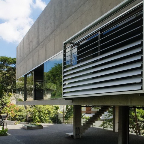 It was built on a corner plot with a very steep, with 10 m. on average between the highest and lowest. The project, however, has spectacular views: quiet and tree-lined streets, a panoramic view of the Tiete River valley, which is the main river in the city of São Paulo. To provide simplicity and convenience to home life, the house had raised in its entirety with a small program on one level. Regardless of the plant, this level was suspended and made with glass enclosure to enjoy the surroundings.