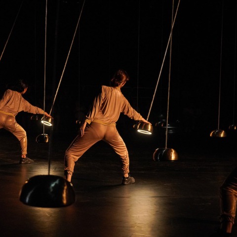 Bells also serve as speakers, structuring a square space with metallic entities that seem to dance in harmony with humans or threaten them with their movements. Its pendulum movements describe the search for links between opposites, while Matthias Schack-Arnott's music navigates between the gongs of Tibetan instruments and the sounds of bells.