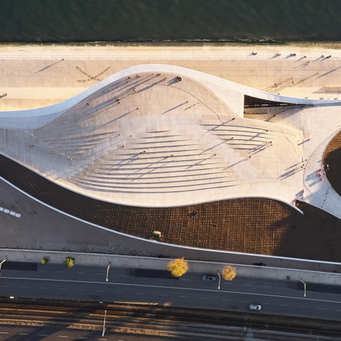 ACO drainage channels in the MAAT. The cover of the MAAT museum in Lisbon is not only a singular structure that gives shape to the new cultural building, but also an accessible square that allows to enjoy the views of the city and the Tagus River. Hidding in the pavement, the Brickslot drainage canals of ACO are invisible, responsible for collecting and channeling rainwater.