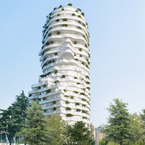 The balconies for each home are separated by built-in planters, which allow the greenery in the surrounding area to extend up the building, with native plants used throughout. The design incorporates a number of features that make it sustainable in Tirana’s warm climate. Thanks to the broad overhanging balconies, the building is protected from excessive sunlight, and the floor layouts enable natural cross-ventilation. Rainwater capture and heat recovery systems minimise the building’s water and energy requirements.