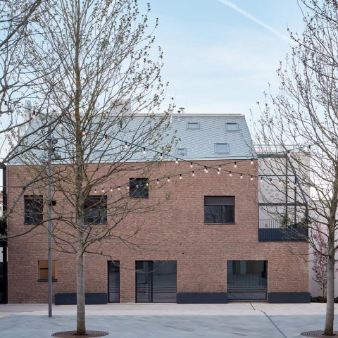 A diversity of semi-public and private functions are contained on the premises, which activate the new public space in multiple ways on a daily basis (terrace of the restaurant, retail) and occasionally (events). The multifunctional central space is defined by four trees, surface alterations, and the illumination. The green is filled with mobile pots. The findings from the archeological survey and historical parcellation are presented in the pavement.