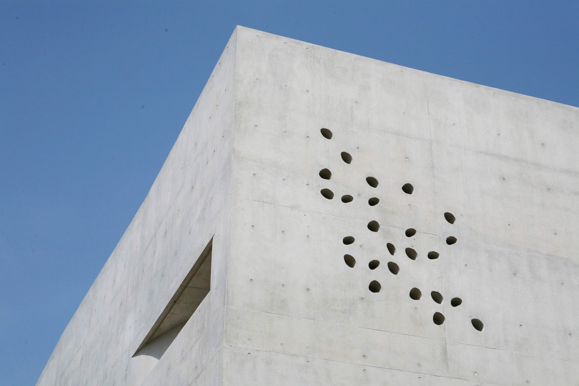 The architecture is allowed subtly recede into the background as an inanimate object by the monolithic choice in materials. Smooth concrete is used extensively internally, while externally the concrete becomes ground to expose the grains of gravel and sand used in the construction process. Consequently, architecture is no longer found in the building itself, but in the relationship between these monolithic blocks and the landscape.