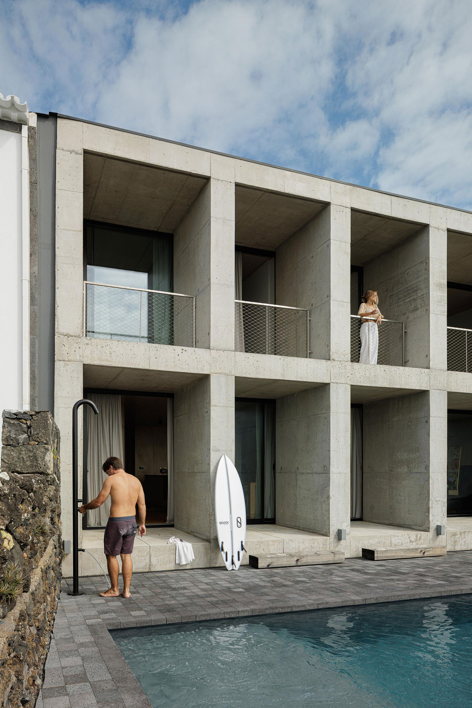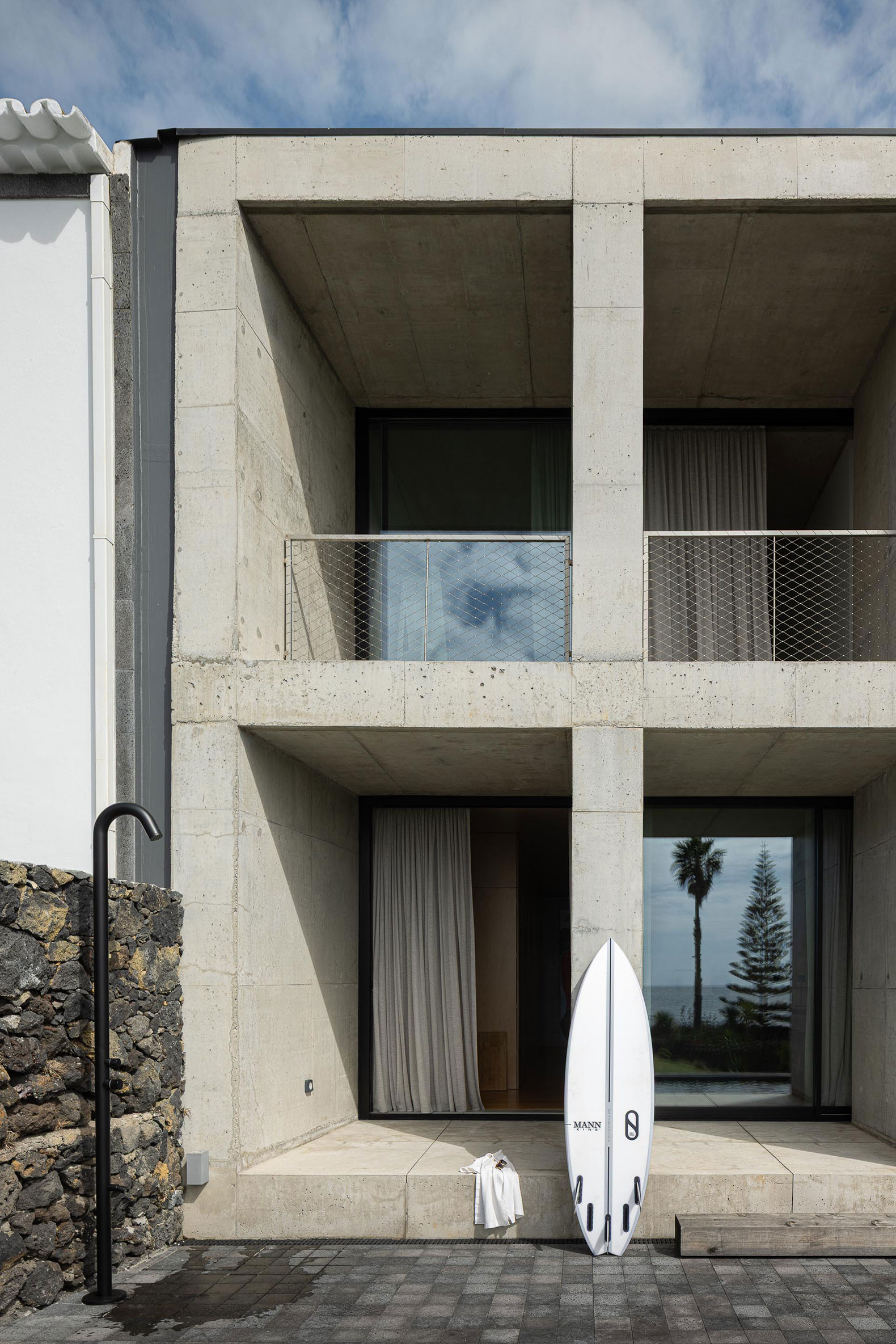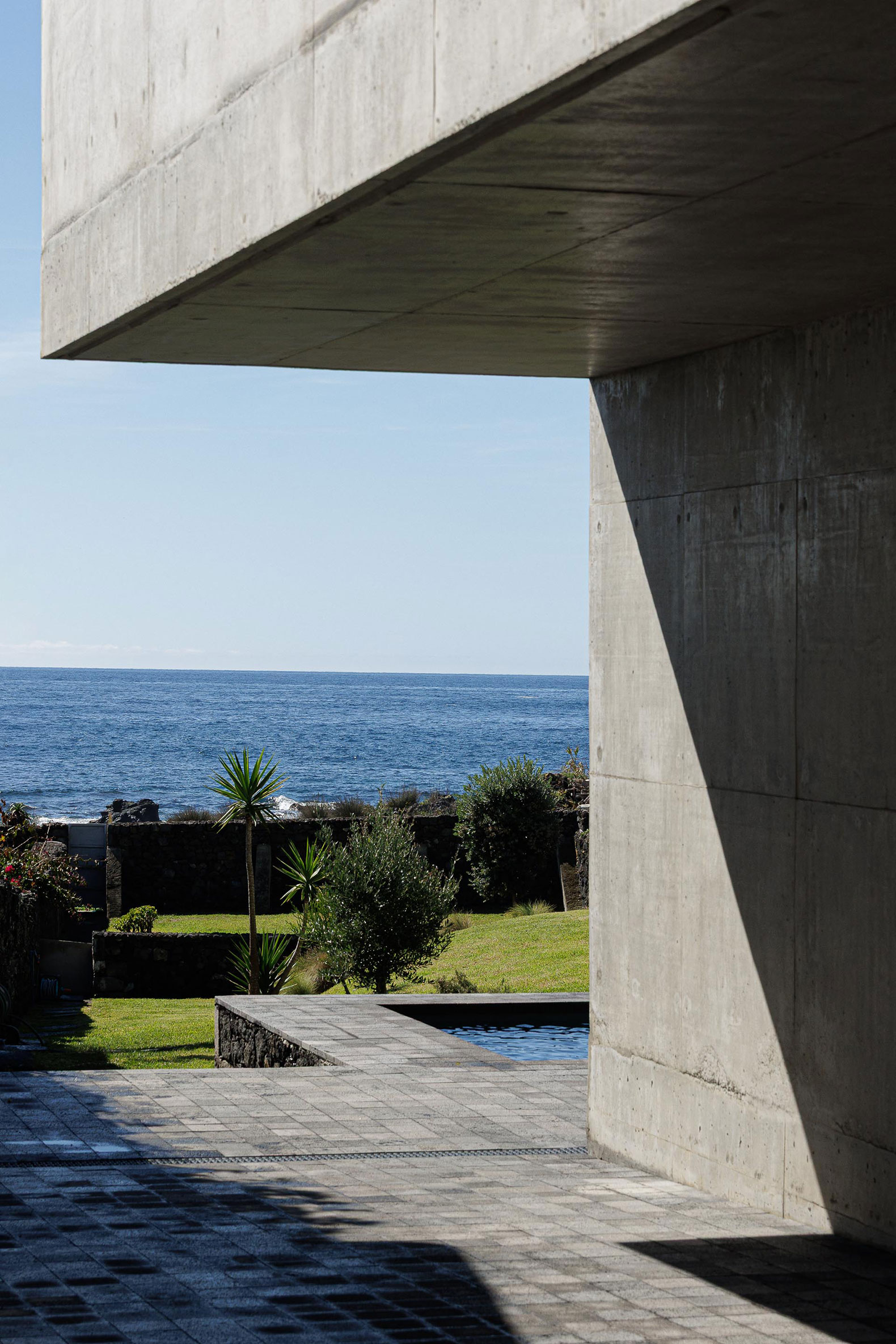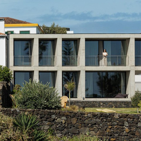 The project arose in a particular context: a house designed for the parents of one of the studio's founders. This gave us freedom and responsibility. The opportunity to design without noise, without compromise, almost as if starting from a blank page. The site, the last vacant lot on a stretch of the southern coast of São Miguel, demanded a solid structure. Between old buildings and a harsh Atlantic landscape, the house rises as the endpoint of a block and, at the same time, as a natural extension of the rock.