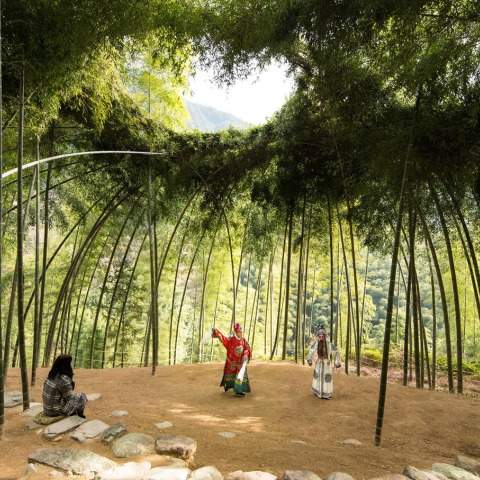 The importance of bamboo in Chinese culture arises from a range of qualities such as its flexible structure, the sparkling green lighting effect that a bamboo grove engenders, its many varieties, and its technical properties as a material. For the village of Hengkeng, Xu Tiantian designed a theatre stage that is inspired by a historical account.