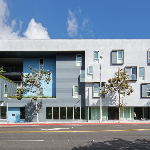 Located directly across the street from Santa Monica College, the building also includes community space and 6700 square feet (622 square meters) of ground level retail.