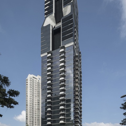 "An interesting facet of The Scotts Tower is the way that it reacts to the urban context of Singapore. Instead of the more usual means of planning a city horizontally, we have created neighbourhoods in the sky: a vertical city where each zone has its own distinct identity."