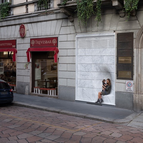 A door hidden in the marble front gives entrance to marble manufacturer Marsotto’s showroom