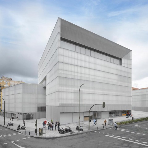 Designed by the Spanish office, which is also based in Berlin, this project from Nieto y Sobejano Arquitectos developes what we could consider a "social or programmatic condenser" which includes a market area, a sports centre and an activity quite opposite to the latter, a library. A large container with a very high density, similar to that of Madrid's city. A large container covered by large pieces of cast glass which provide the building with a vitreous and, we could also say, quite neutral image.