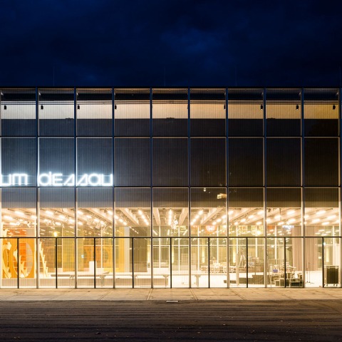 The glass façade that runs around all four sides forms the outer envelope. It embraces the Black Box and the Open Stage and turns them into exhibits in their own right presented in a display case. Structured by a 2.10-metre grid, here addenda architects deliberately rely on repetition to structure their de-sign and yet ensure its maximum flexibility. While the dimensions of the Black Box result from the predefined size of exhibition area required, the mu-seum’s outer dimensions were not included in the brief. Economic factors, namely money and time, were decisive here.