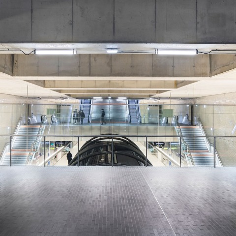 The stations are designed as large volumes crossed by their structures and free of cladding. The layout of the halls allows the public to feel the sense of walking towards the metro trains, despite the spectacular scale of the spaces.