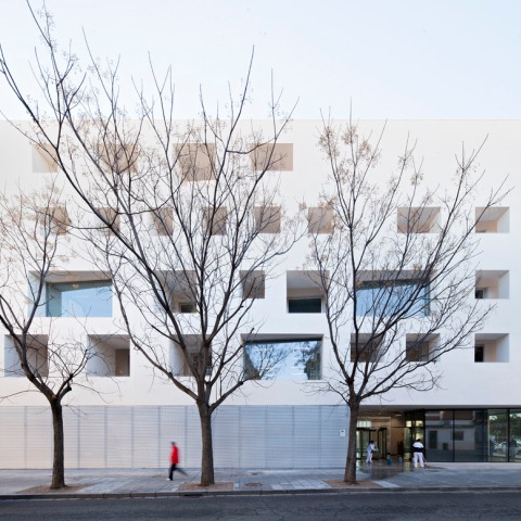 Rafael de La-Hoz team proposes a weightless volume in which contrast between the concrete and glass façades defines the project. There is also an extra work on these façades through setbacks and openings that enrich the vision of the building from the street.
