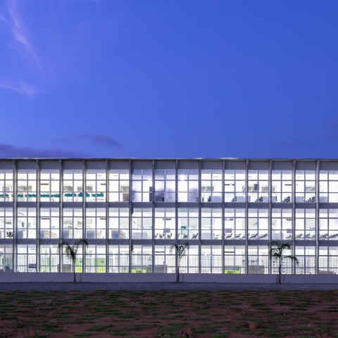 Following a careful analysis of the structural opportunities, a system of ribbed slabs made possible by in-situ molded concrete was adopted in the São José dos Campos building. In Piracicaba instead a system of alveolar slabs was employed, exploring the best possibilities of precast concrete. These choices allow wide free spans and a significant modularity of space based on a rigid 1.50 x 1.50 meter grid. Moreover, the in-depth study into solar radiation results in large floor-to-ceiling windows, which grant abundant daylight to classrooms and laboratories, playing with the deep shadows generated by the vertical concrete elements.