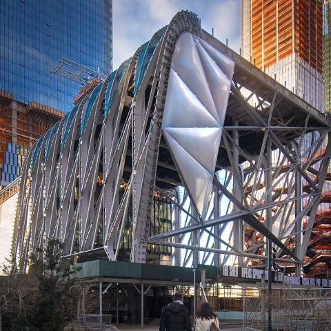 The Shed, New York’s new center for artistic invention, is a building that will accommodate the broadest range of performance, visual art, and multi-disciplinary work. Two principal components comprise The Shed: an eight-level “fixed” base building for cultural programming and support spaces, and a telescoping outer shell that deploys over an adjoining plaza to double the building’s footprint on demand. The base building includes two expansive levels of gallery space, a versatile theater, a rehearsal space, a creative lab for artists, and a sky-lit event space. The shell forms a vast hall that accommodates large-scale performances, installations, and events.