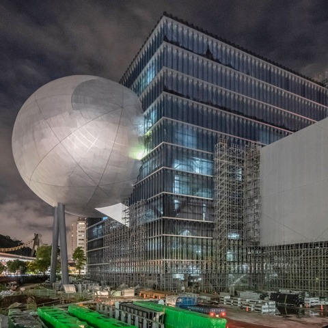 The much-anticipated theatre complex currently with three auditoriums, under construction, is nearing completion in the capital of Taiwan. OMA releases latest photos showing unobstructed views (without scaffolding for the first time) of the 50,000 sqm complex and its sphere-shaped auditorium, the ‘Proscenium Playhouse’.