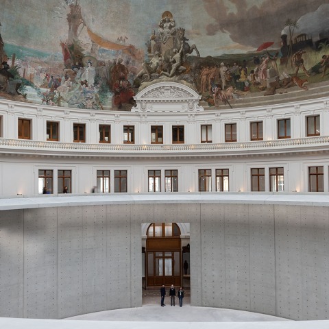 With some 10,500 square meter total surface after the renovation and 6,800 m² of  surface of spaces accessible to the public, devoted to the cultural programme de new musuem emerge in a historical monument wath originaly has function as a grain exchange in the 18th century. An iron dome was built to capp its expansive central rotunda in 1811, which is listed as a historical monument, and its panoramic interior mural was commissioned to five different artists at 1889, now completely restored its 1,400 sqm by a team of 24 restorers.