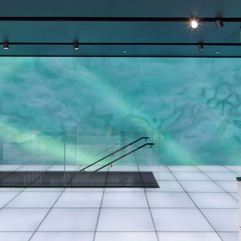 The gallery also projects images of nature, simulating different weather conditions and seasons--such as the falling of rain, or the emulation of sunshine to address a smoggy day. Designed by art critic and curator Jérôme Sans, the installation changes with the passing of seconds, minutes, and days.