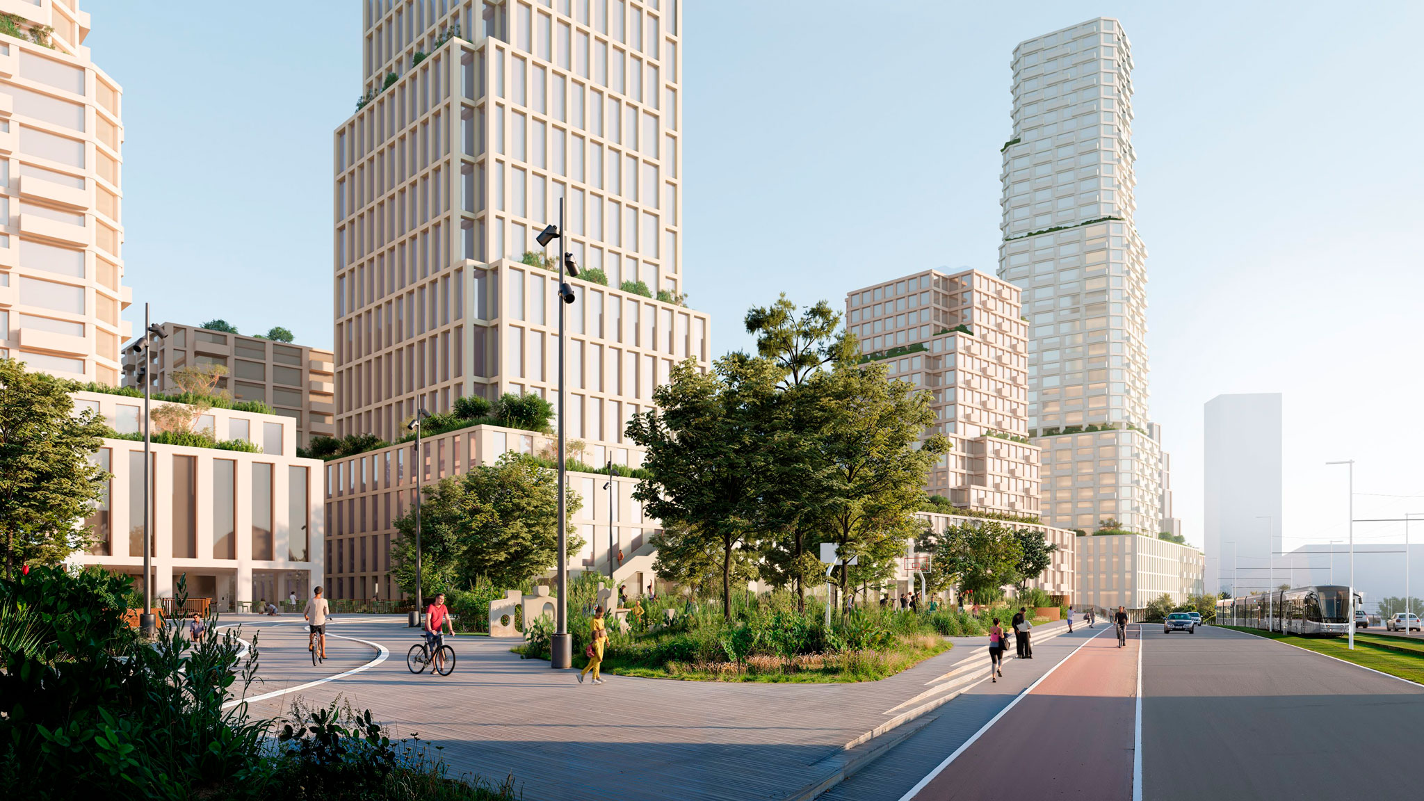 This adaptable framework supports a diverse mix of structures, including residential towers, offices, a school, healthcare facilities, an Urban Sports and Street Culture Campus, and other social facilities that foster urban life.