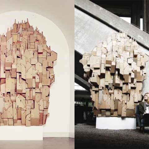 “In relation to many of my other works the "Cardboard Heaven-sculpture" tells a quiet different story with much to think about: who moved out without locking the door? Who lives on the third floor? Has someone died? Who is about to be given birth? Why are there no people? Are they asleep? Or maybe - is it just a bunch of old cardboard?”
