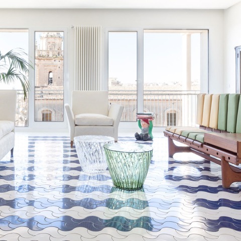 The NIR House designed by the Italian Giuseppe Gurrieri, like the ECS House in Sicily, and Nunzio Gabriele Sciveres. It is located in the historic center of Ragusa where its living room, besides having a view of the cathedral, is also characterized by its ceramic tiles that guarantee the reflection of light.