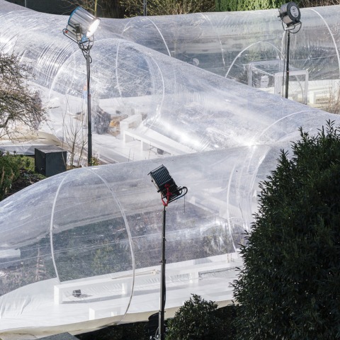 The Pipeline inflatable structure had an air volume of 4,700 m³ and air flow of 156,000 m³/h, the pneumatic, reconfigurable and itinerant building with 1,500 sqm of surface has a PVC membrane with a weight of 3.5 T and a thickness of 0.65 mm.