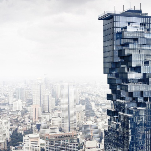 MahaNakhon is a new 77-storey high-rise complex located in Bangkok’s Central Business District, with a direct link to the Chongnonsi BTS Skytrain station. The development of more than 150,000 square meters is comprised of a landscaped public plaza; a multi-level retail centre with restaurants, cafes, and 24-hour marketplace; 200 serviced apartments operated by the Ritz-Carlton; the Bangkok Edition, a 150 room boutique hotel in collaboration with Marriot International and Ian Schrager; and a rooftop Sky Bar and restaurant. MahaNakhon is the most ambitious complex of contemporary architecture and urbanism in Thailand and the tallest building in Bangkok.