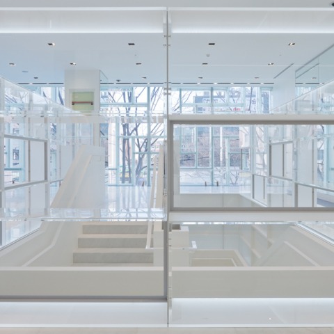 Coach’s ninth Japan flagship is a two-story, corner site on Omotesando, a prominent retail corridor in Tokyo. In comparison to the increasingly decorative elevations that characterize Omotesando, OMA’s design integrates display into the façade, seamlessly communicating the brand’s presence from the inside out.