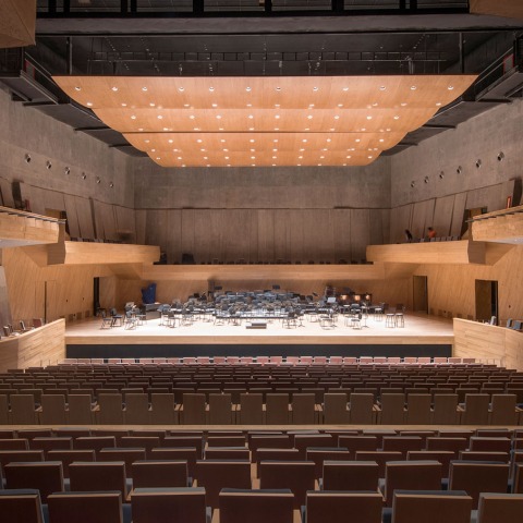 The architectural program includes a concert hall of classical, traditional and popular music for 966 spectators, which also has the capacity to present theater and dance shows, as well as film screenings. The site also has a rehearsal room, which allows the presentation to the public of chamber concerts, small theater, film and contemporary dance performances, with a capacity for 150 spectators.