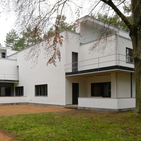 When in the 1990s, for the first time, the renovation of the master’ houses took place, their original appearance was very disfigured: while the Moholy-Nagy House and the Gropius House were completely destroyed during the war, and both they were replaced in 2014 by two proposals, which were both highly praised and also controversially discussed, two buildings by Bruno Fioretti Márquez office, the Muche-Schlemmer House, where the fellows holders now live, and the Feininger House, which is used by the Kurt Weill Society, they appear as a mixture of reconstructed facades and spatial structures, with details and additions later.