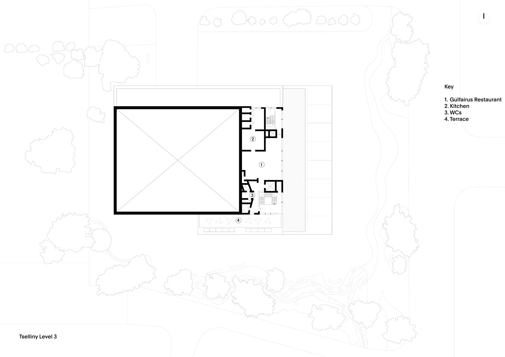 As part of the reconstruction, the floors of the entire ground level were lowered to remove all internal level changes. The four steps at the main entrance were eliminated, establishing a single continuous ground plane that flows outwards in all directions into the surrounding landscape. This surface forms a literal ground for public life and a metaphorical steppe, linking the building to Kazakhstan’s vast natural horizons.