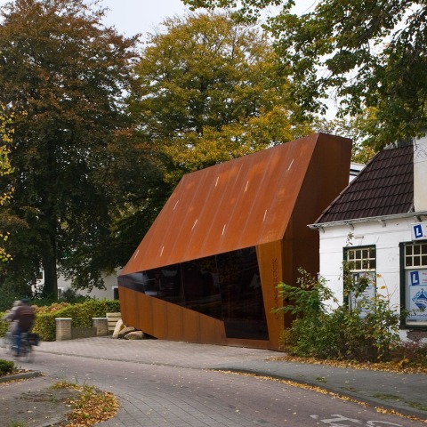 The challenge was to design an intervention to turn the house in a more representative office. The temporary character of the design allowed us to refrain from renovation and adapting. Instead we designed a Cortensteel screen that masks the old building.