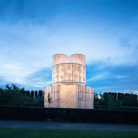 The pavilion is a reinterpretation of one of the most iconic buildings of the Baroque era: the church of San Carlo alle Quattro Fontane in Rome designed by the architect Francesco Borromini (1599–1667). Borromini used basic geometric shapes, circles and ovals to create a dynamic church space of great beauty.