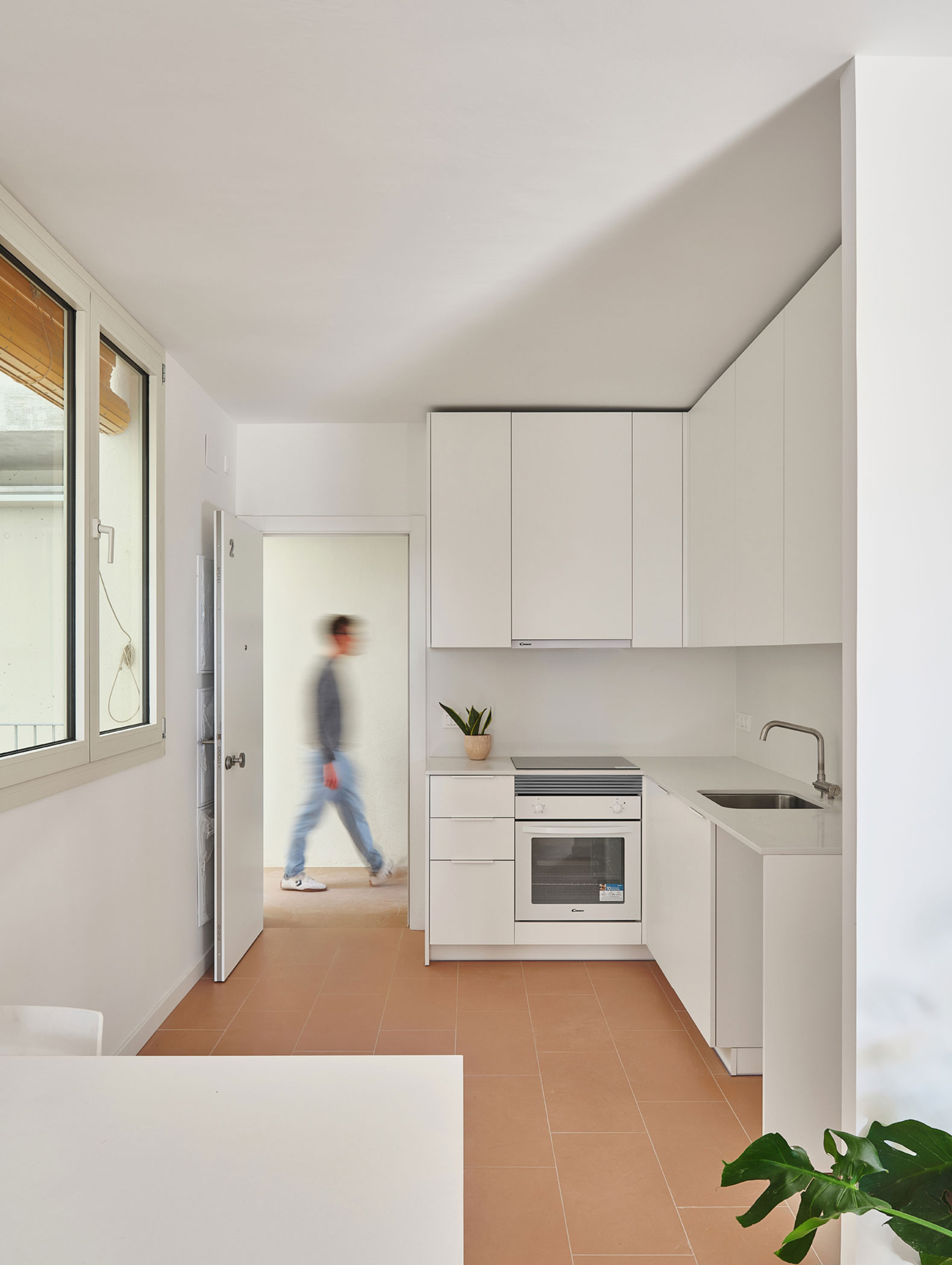 The actions proposed by Carles Enrich Studio to develop the project constitute a set of intelligent strategies, where the access areas to the dwellings act as gathering spaces designed to enhance social cohesion. The parking areas are adaptable and feature ceramic lattice screens. The proposal includes eight dwellings per floor, two circulation cores, and four courtyards that provide natural light and cross ventilation to both the common areas and all the dwellings. Inside the dwellings, space use is optimized by eliminating corridors and conceiving the terraces as extensions of the interior space.