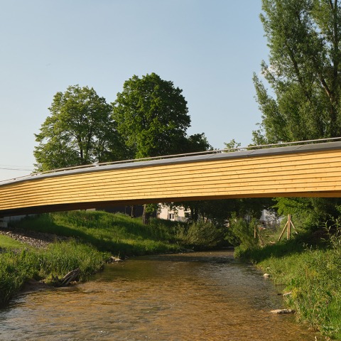We were able to implement our premise for good structural wood protection in an appealing way through the inclined girders. This shows that together we can interpret wood in a contemporary way for bridges, and hope to herald a paradigm shift."