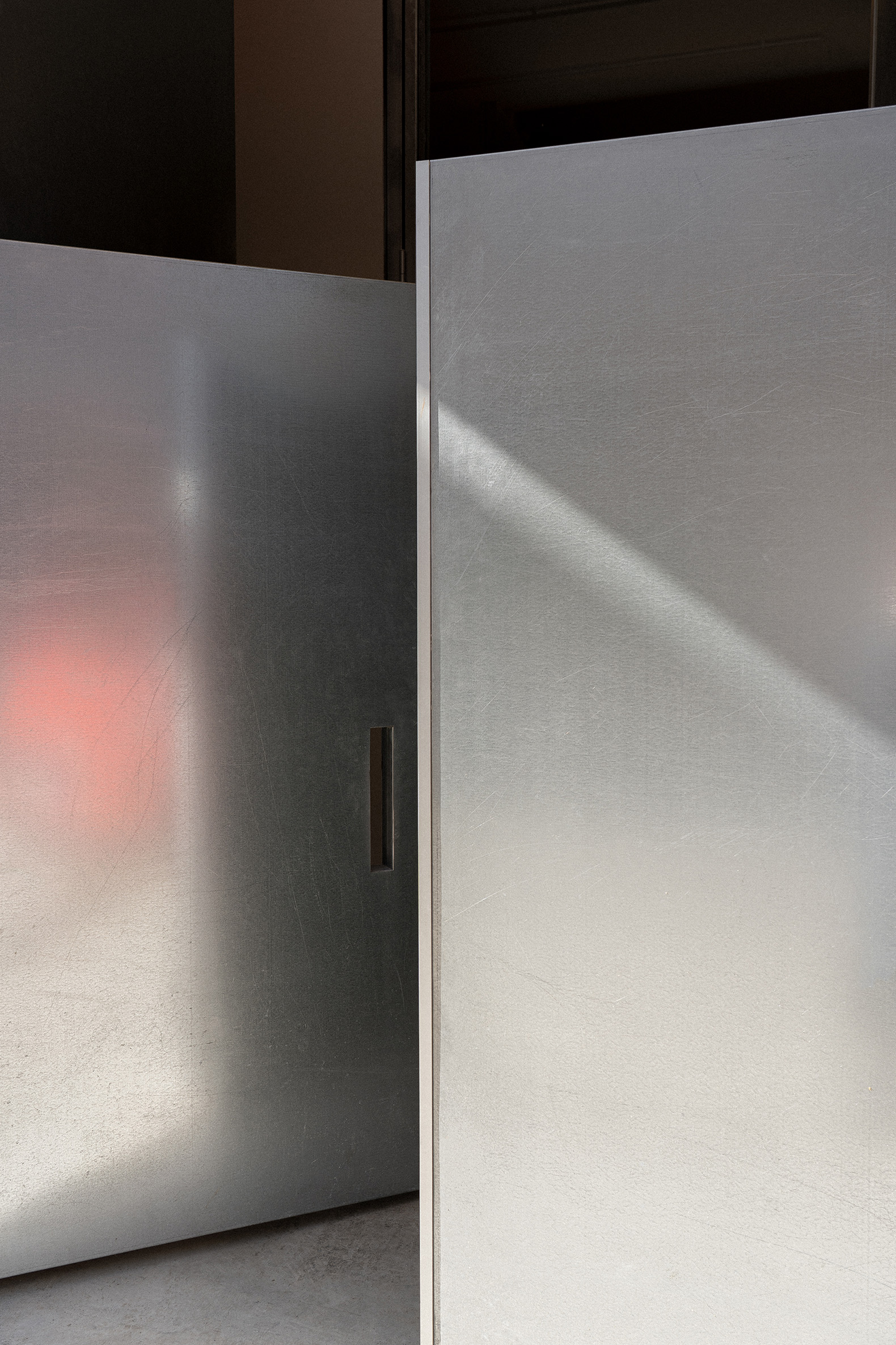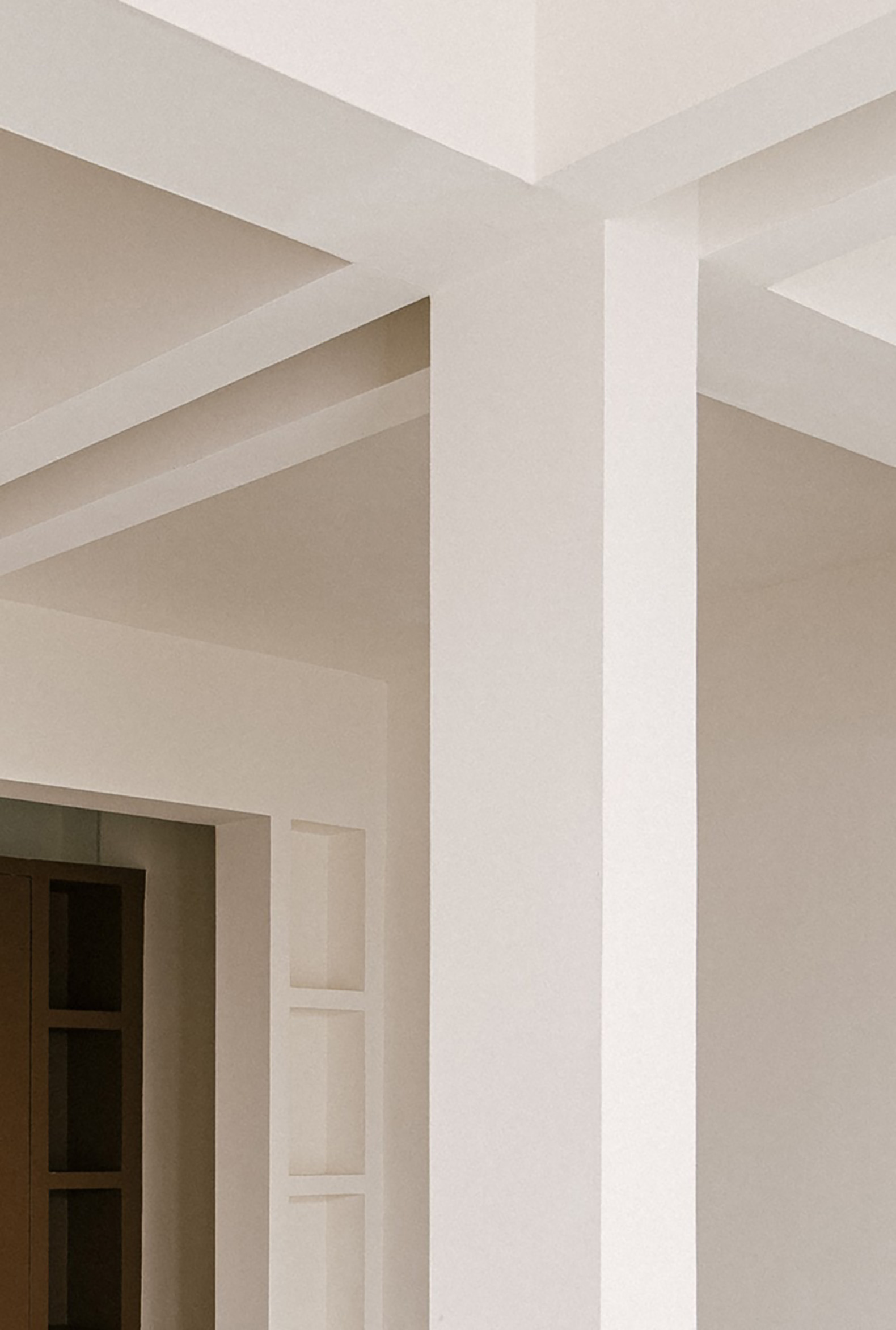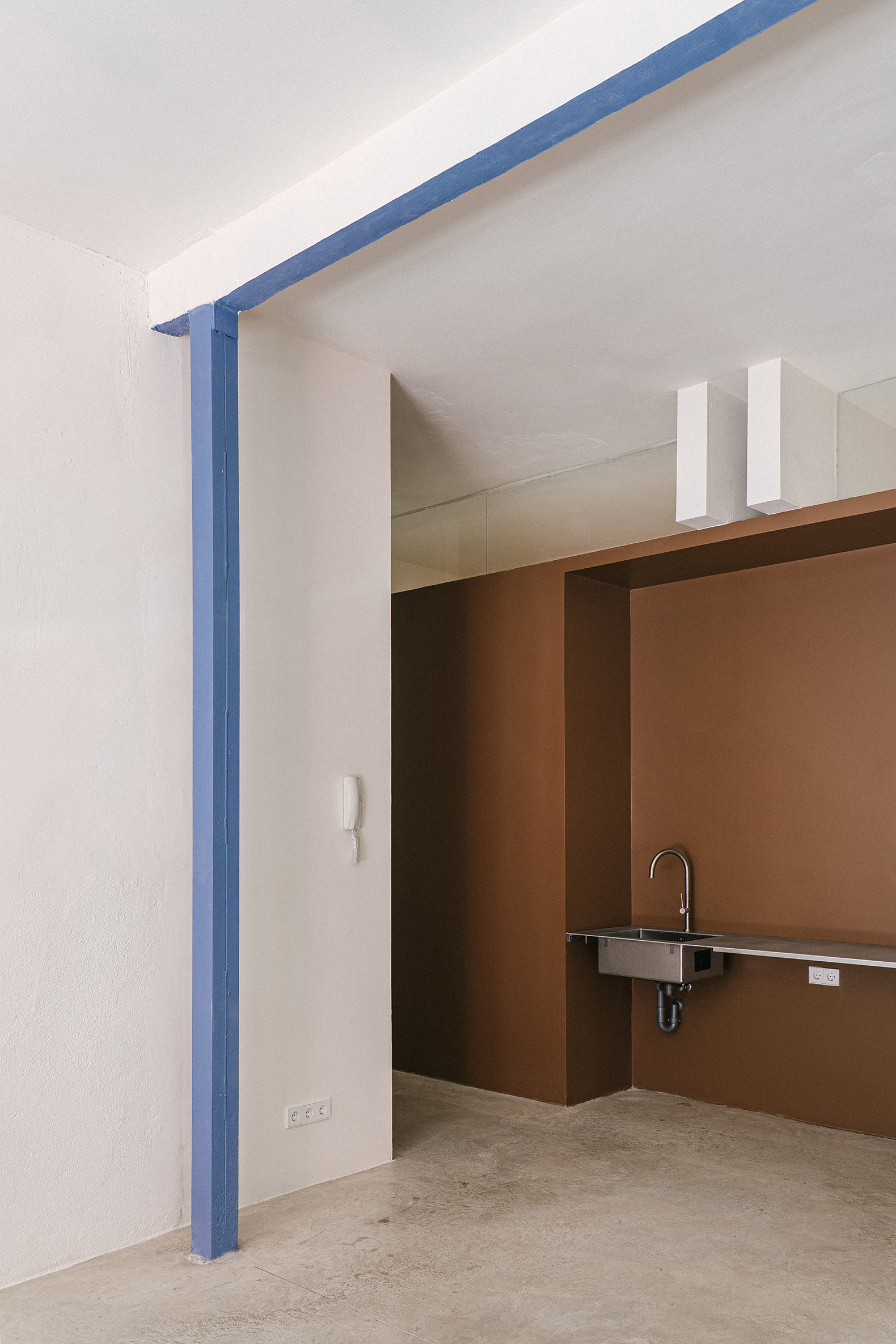 In between, the celebration of a problem. A sequence of false structural frames hide installations and structural irregularities, restoring a sense of rhythm to the interior—still fluid but now outlined, one space or five spaces, boundaries that blur, undefined territories waiting to be inhabited.