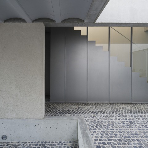 The existence of the dividing wall of the adjoining four-story building suggests the need for a pergola that covers the stepped central void to veil the presence of this powerful canvas. The prolongation of the interior beam structure through the rhythm inferred by the pergola reinforces the presence of the patio at the heart of the house. The patio becomes a dense and vibrant place that we imagine will reflect domestic life: the children's play on the lower level, the meeting and reading on the terrace, the daily coming and going through the corridor and the stairs, the green pergola, the change in light throughout the year…