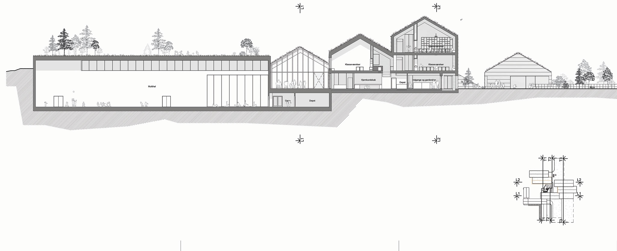 Designed as a cluster of interconnected buildings that follow the natural slopes of the land, the new Glyvra School transforms the landscape into a driving force for community, play, and learning. Much of the existing site is preserved, while green spaces are integrated into the heart of the campus, and the buildings extend naturally into the landscape. This creates a seamless flow between indoors and outdoors, encouraging movement, curiosity, and creativity throughout the day.