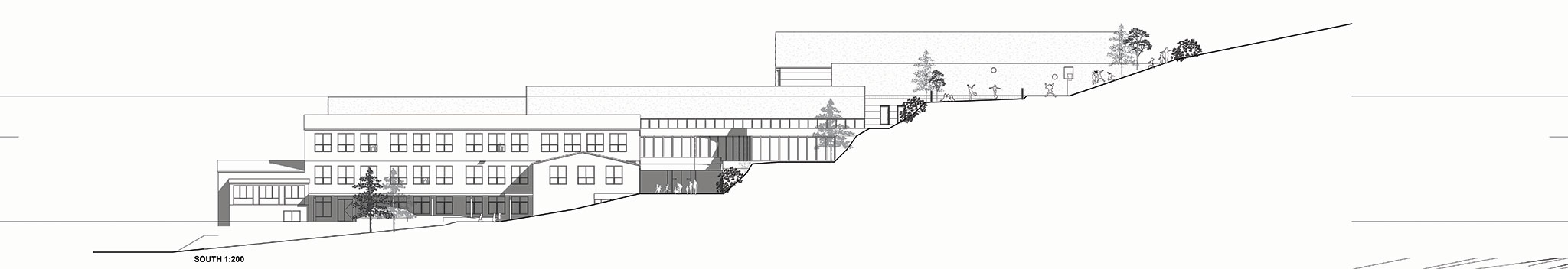 Sheltered play areas, a variety of plants, and natural wind protection make the outdoor environment usable year-round, facilitating everything from hands-on exploration to social interaction. Art installations and activity areas promote well-being, sensory stimulation, and community bonding, making the school a vibrant learning ecosystem for students aged 5 to 12.