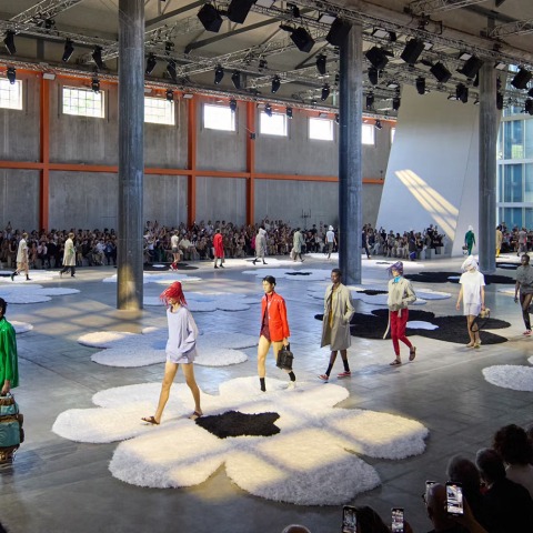 The Prada show is always one of the most anticipated events of Milan Fashion Week, which, since 2018, has been held in this space of the Fondazione Prada, known as the Deposito. This space has been used as a blank canvas for the various runways, designed by AMO, the research laboratory of the Rotterdam-based architecture studio OMA, directed by Rem Koolhaas. On this occasion, architects and designers decided to toast a more positive future and seemed to have said: let there be light.