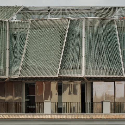 Local crafts and industrialization: Exploring ornament and crafts through new industrial techniques and introducing a contemporary reinterpretation, a dialogue is established with pre-existing craft elements. In the extension, the rope warp latticework on the upper floor or the polished and die-cut stainless steel latticework on the added first floor are handcrafted by local trades.