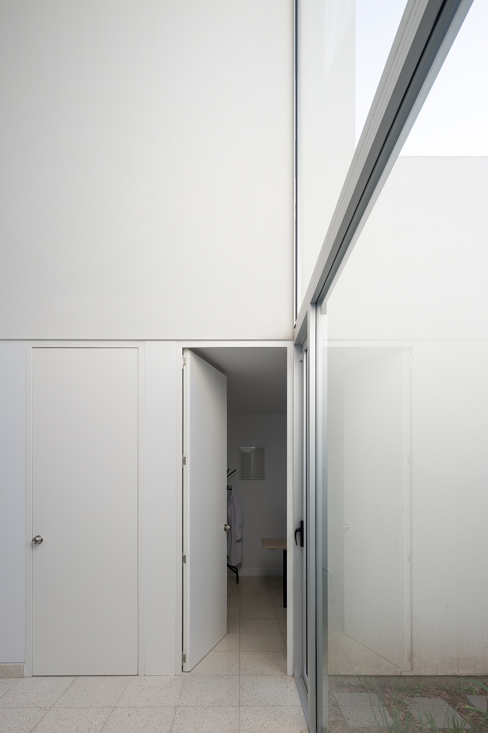 In the combination of variables and exploration of possibilities mentioned above, the decision was made to incorporate courtyards into the programmatic distribution system, resulting in improved natural light and ventilation in all the spaces. One of the courtyards serves as the building's entrance and is accessed through a retractable enclosure that integrates the sidewalk during consulting room hours.