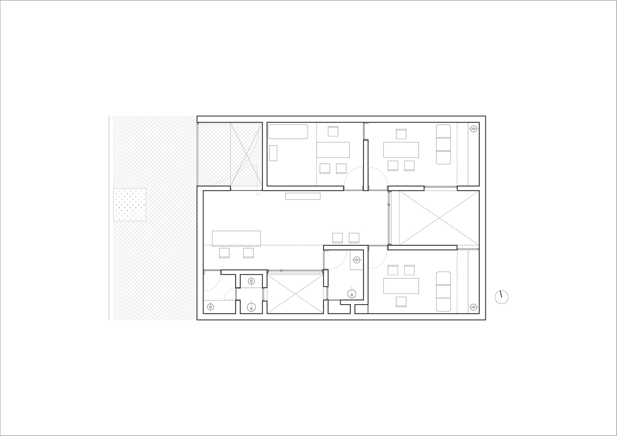 Despite some time and budget constraints, the project progressed, with a nine-month timeframe for construction. Initially, the priority variables for the preliminary design proposal were established, exploring to the fullest extent the possibilities for covered square meters that could be developed on a single floor. As a result of this stage, the program was defined, encompassing three consulting rooms, a waiting room, restrooms, and staff facilities.